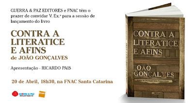 «A literatura não é um território de pacificação ou de anemia. ‘Contra a Literatice e Afins’ (Guerra e Paz), de João Gonçalves, foi ontem lançado em Lisboa, e é um inventário de argumentos sobre a matéria. Gonçalves é um excelente leitor que não depende no universo de deferências literárias e editoriais – tem, a seu favor, o mau génio, a tentação polémica, a necessidade de beleza. Disso tudo fala a literatura; de renascimento, de vingança, de uma eternidade que não demora a passar. As boas consciências que procuram ver na leitura "um acto de cidadania" escusam de passar por estas páginas, verdadeiros textos de guerrilha onde sobrevoa a inspiração de Sena e o deslumbramento diante dos mestres (Gaspar Simões ou Prado Coelho, por exemplo). Pela literatura, contra a literatice.»