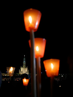 «No nosso tempo em que a fé, em vastas zonas da terra, corre o perigo de apagar-se como uma chama que já não recebe alimento, a prioridade que está acima de todas é tornar Deus presente neste mundo e abrir aos homens o acesso a Deus. Não a um deus qualquer, mas àquele Deus que falou no Sinai; àquele Deus cujo rosto reconhecemos no amor levado até ao extremo (cf. Jo 13, 1) em Jesus Cristo crucificado e ressuscitado. Queridos irmãos e irmãs, adorai Cristo Senhor em vossos corações (cf. 1 Ped 3, 15)! Não tenhais medo de falar de Deus e de ostentar sem vergonha os sinais da fé, fazendo resplandecer aos olhos dos vossos contemporâneos a luz de Cristo, tal como a Igreja canta na noite da Vigília Pascal que gera a humanidade como família de Deus. Irmãos e irmãs, neste lugar é impressionante observar como três crianças se renderam à força interior que as invadiu nas aparições do Anjo e da Mãe do Céu. Aqui, onde tantas vezes se nos pediu que rezemos o Terço, deixemo-nos atrair pelos mistérios de Cristo, os mistérios do Rosário de Maria. A oração do Terço permite-nos fixar o nosso olhar e o nosso coração em Jesus, como sua Mãe, modelo insuperável da contemplação do Filho. Ao meditar os mistérios gozosos, luminosos, dolorosos e gloriosos ao longo das «Ave Marias», contemplamos todo o mistério de Jesus, desde a Encarnação até à Cruz e à glória da Ressurreição; contemplamos a participação íntima de Maria neste mistério e a nossa vida em Cristo hoje, também ela tecida de momentos de alegria e de dor, de sombras e de luz, de trepidação e de esperança. A graça invade o nosso coração no desejo de uma incisiva e evangélica mudança de vida de modo a poder proclamar com São Paulo: «Para mim viver é Cristo» (Fil 1, 21), numa comunhão de vida e de destino com Cristo. Sinto que me acompanham a devoção e o afecto dos fiéis aqui reunidos e do mundo inteiro. Trago comigo as preocupações e as esperanças deste nosso tempo e as dores da humanidade ferida, os problemas do mundo e venho colocá-los aos pés de Nossa Senhora de Fátima.»